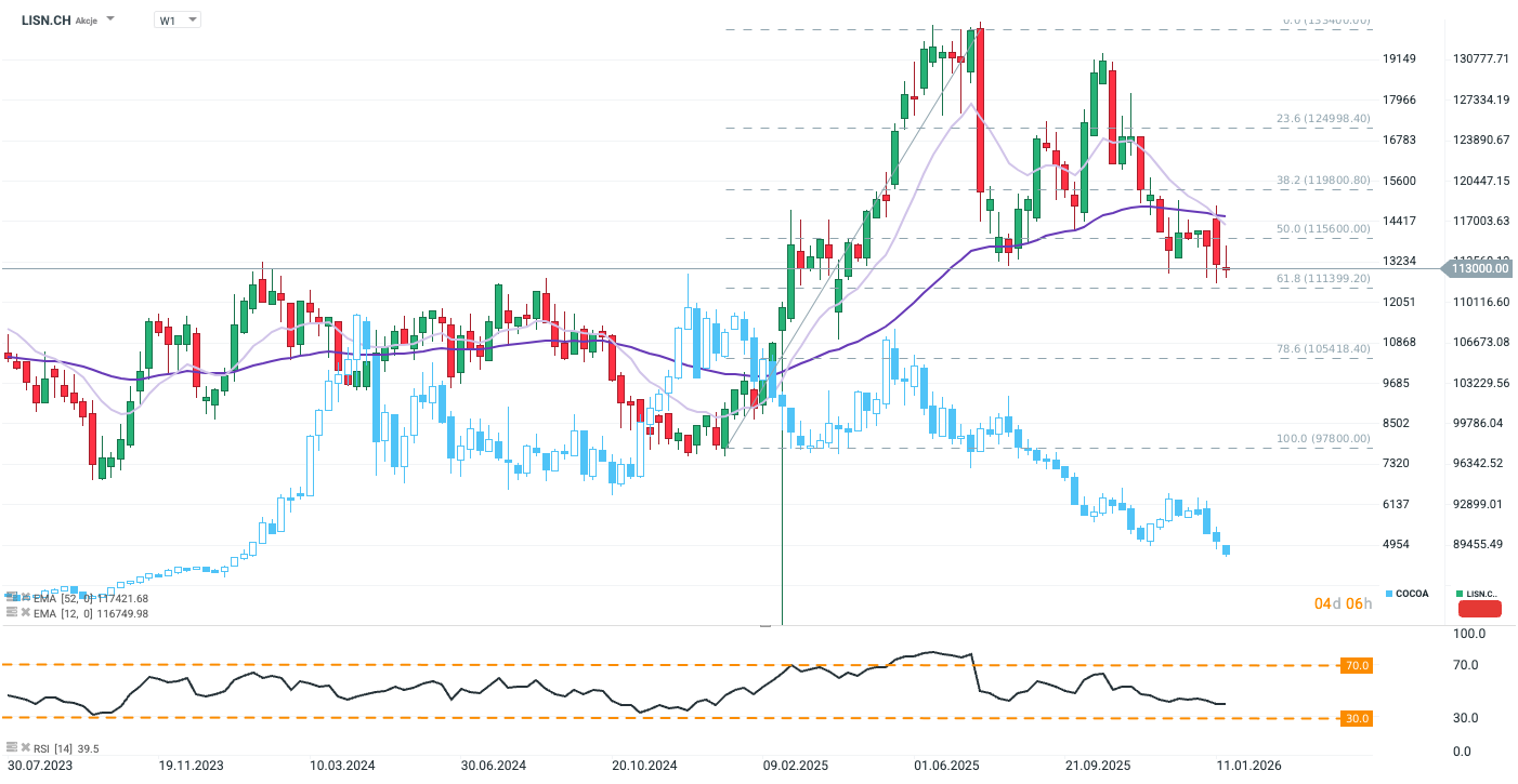 Lindt share prices were resilient to cocoa price volatility throughout 2025. Source: xStation5