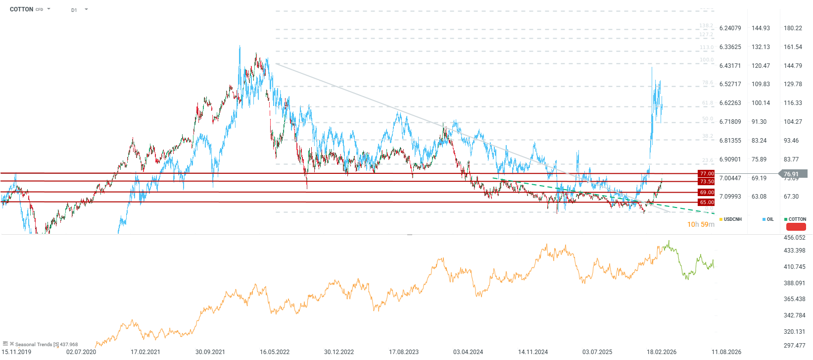 - Rising global inventories and the prospect of falling oil prices later this year cast doubt on the sustainability of the current cotton rally, although prices remain far below 2022 peaks.