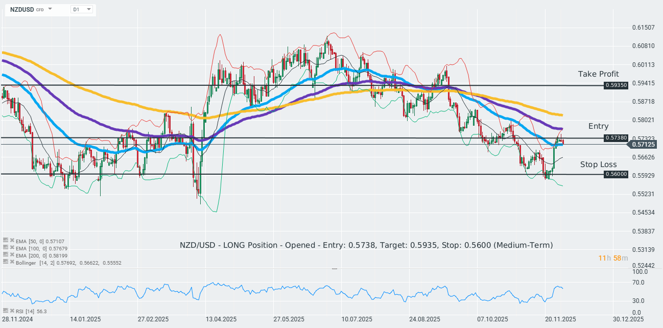 Crédit Agricole Research recommends taking a long position on NZDUSD at market price with a target of 0.5935 and a Stop Loss order at 0.5600. Source: xStation5