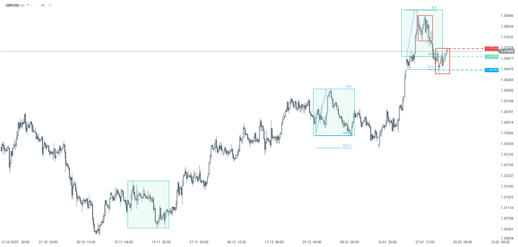 The Overbalance analysis aims to identify three financial instruments, analysed exclusively on a four-hour interval (H4). The analysis uses only the Overbalance methodology, which allows us to determine where the trend may continue or where it may change.