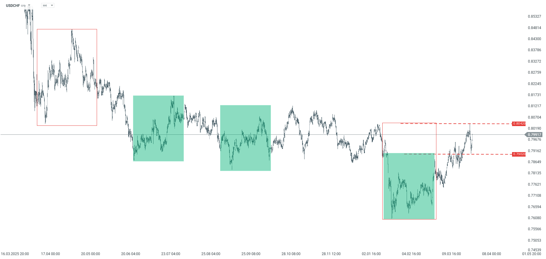 Since early January, USDCHF has been in a downtrend. However, an upward correction has been developing since late January, and its range has already exceeded smaller geometric patterns, including the 0.7902 level. Nevertheless, the price has failed to break through the key resistance at 0.8042, where the upper boundary of the largest corrective pattern is located. According to the Overbalance methodology, the downtrend remains in effect until this level is broken. The decline could accelerate after falling below the 0.7902 level, which is the lower boundary of the smaller geometric pattern. Conversely, a break above 0.8042 could lead to a shift to an uptrend.