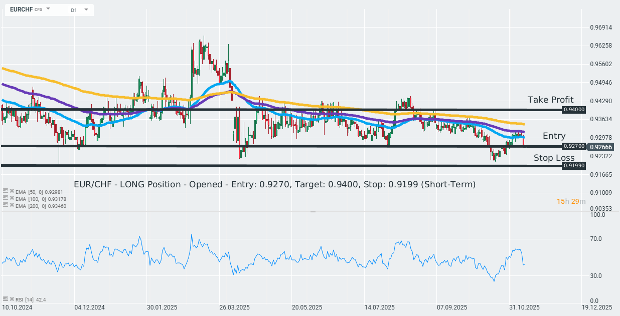 JP Morgan recommends taking a long position on EURCHF at 0.9270 with a target of 0.9400 and a stop loss order placed at 0.9199. Source: xStation5