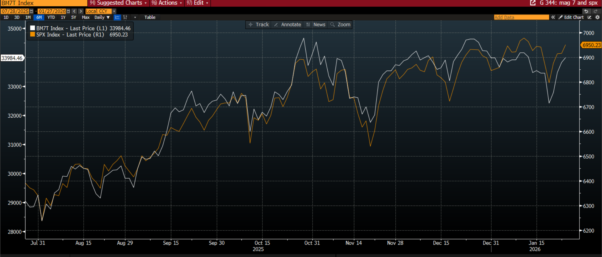 Chart 1: The Magnificent 7 have underperformed the S&P 500 this year